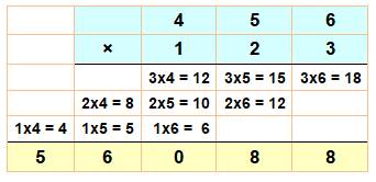 multiplication de deux nombres de trois chiffres nécessite 3 x 3 = 9
