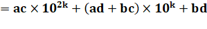 Ex: 1 234 x 4 567 = 12 x 45 x 104 + (12 x 67 + 34 x 45) x 102 + 34 x 67 = 5 635 678 |