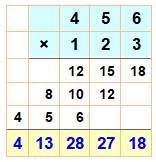 + 18 et donner le résultat de la multiplication: 10x100 + 27x10 + 18 = 1288 Avec de grands nombres, une autre méthode est plus économique: calcul