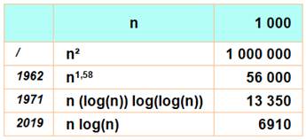 milliard de chiffres prendrait: (109)² ns = 32 ans L'algorithme connu de Schönhage-Strassen réduit ce temps à une