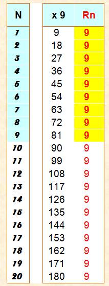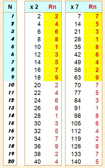chiffres d'un nombre jusqu'à ce qu'il n'en reste plus qu'un. Ex: Rn (789) = Rn (7 + 8 + 9) = Rn (24) = Rn (2 +