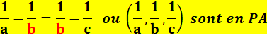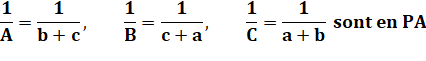 alors ils sont en progression harmonique. 1/a, 1/b, 1/c en PA <=> a, b,