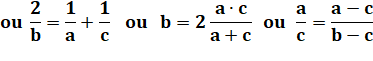 que les sommes (b + c, c+ a, a + b) sont en PH. Théorème Trois nombres dont les inverses sont en progression arithmétique,