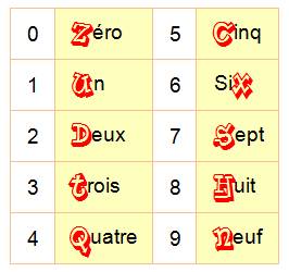 chiffres ont des initiales différentes sauf six et sept. Sur le tableau,