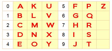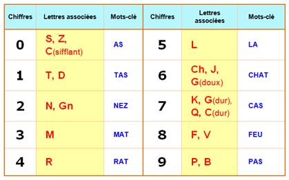 de lettres de l'alphabet à chaque chiffre. Notre exemple
