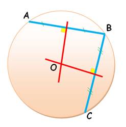 (bleues) des cordes AC et BD. Le centre du cercle se situe à leur