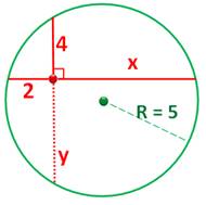 aussi le rayon 5 On prolonge le segment 4 (pointillés). Théorème des cordes: Relation donnant le rayon: Longueur de la corde: 2 + 8 = 10. |