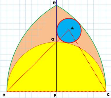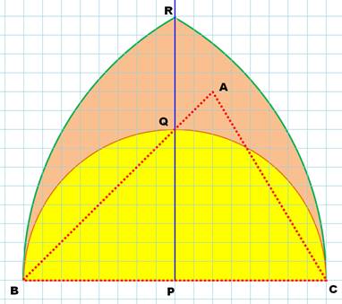 ni isocèle. Pas si facile qu'il y paraît! 1. Si A est sur le demi-cercle BQC, il est rectangle; 2. Si A est sur la médiatrice PR, le triangle est isocèle; 3. Si A est sur les arcs BR ou CR, le triangle est isocèle; et 4. Si A est à l'intérieur du demi-cercle BQ, l'angle A est obtus. Le point A doit
