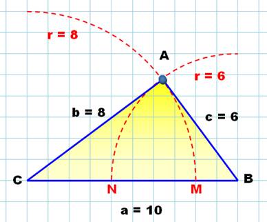 et deux cercles de 8 et 6 unités. Notez que ce triangle, supposé quelconque est en