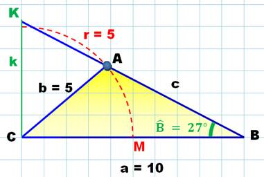 La valeur k dans le triangle rectangle BCK est liée à la tangente de