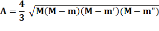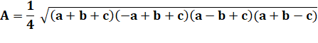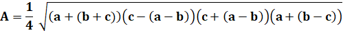 =1/16 (a + b + c)(a + b – c)(b + c – a)(c + a – b) A²