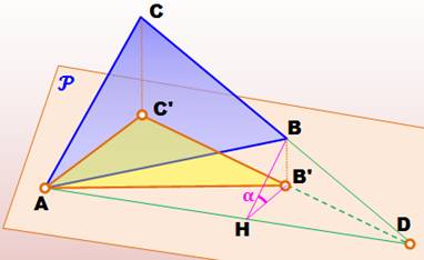du triangle fait un angle alpha avec le plan P (angle du dièdre). Le