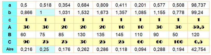 b.c sin (A) = ½ x 7,739 x 15 x 0,984 = 57,15940… A = ½