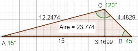 h = b . sin(15°) = 12,2474 x