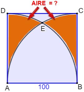 Sommaire de cette page >>> Carré oblique dans quart de cercle >>> Carré dans le quart de cercle et demi-cercle >>> Un cercle et deux quarts de cercle >>> Deux cercles et deux quarts de cercle >>> Un carré et deux quarts de cercle >>> Aire des zones courbes |