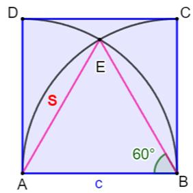 équilatéral (AE = BE = AB = c = rayon des quarts de cercle). Calculs |