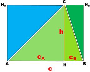 triangles rectangles définis par la hauteur et avec le théorème de Pythagore. |