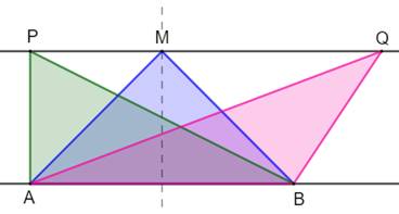 Question Deux droites parallèles. Un segment AB formant la base de trois triangles ayant