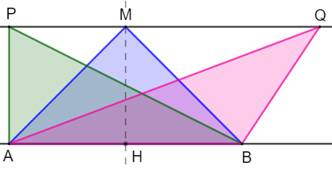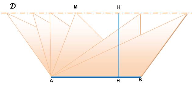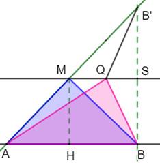 sur la droite PQ ont la même aire: A = ½ AB × MH. Périmètre (P) C'est le triangle isocèle AMB qui a le plus petit périmètre.