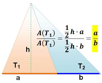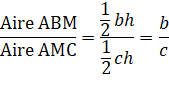 le rapport de leur aire est égal au rapport des longueurs de leur base. |