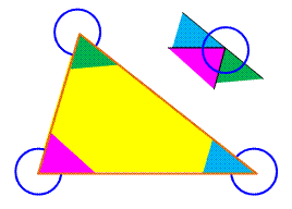 calculer l'aire de la partie jaune par rapport à celle du triangle ? Les