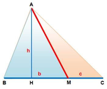dans un triangle quelconque partage le triangle en deux parties d'aires
