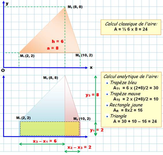 triangle se calcule facilement en calculant l'aire des deux trapèzes (bleu et