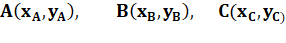 triangle sur un système d'axes qui permet de fixer les coordonnées des trois