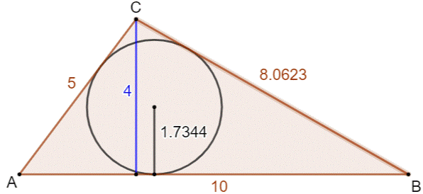 = (10 + 5 + 8,0623) /2 = 11,53115 Aire du