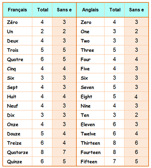 français La première colonne donne la quantité de lettres.