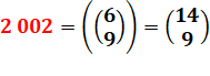 002 façons de prendre 5 ou 9 boules parmi 14. Voir Nombre
