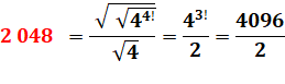 = ( (1 + 2)! )! + 3!4 – 5 = 720 + 1296 – 5