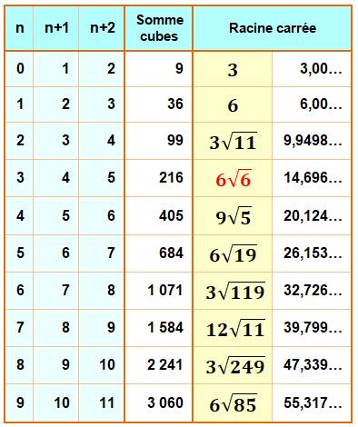 Calcul Valeurs pour n de 0 à 9 Voir Identités générales