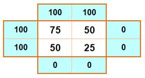 dans le carré central est la moyenne des quatre nombres qui l'entoure. |