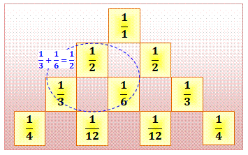 partir des nombres (fractions) de la série harmonique. Chaque ligne est