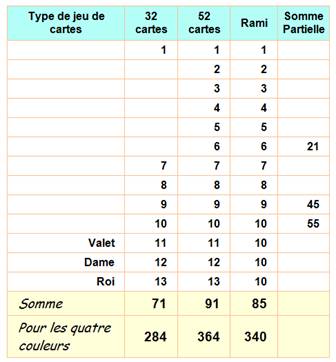 Application Compter le nombre de points dans un jeu de cartes. Note Au Rami comme pour le Black Jack, les figures comptent pour