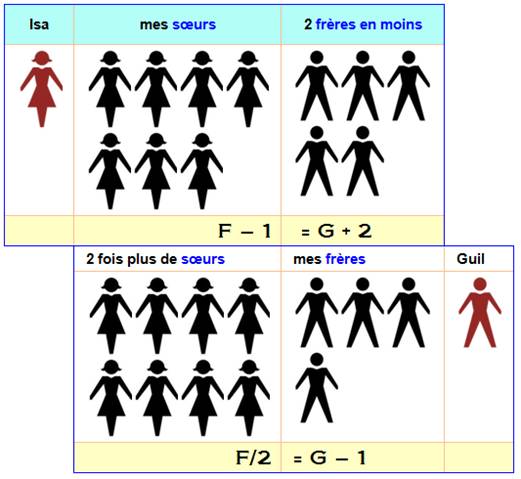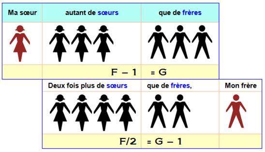 son frère Guillaume: j'ai deux fois plus de sœurs que de frères. Combien