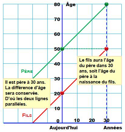 fils, avec pour solution 12 ans et 34 ans. |