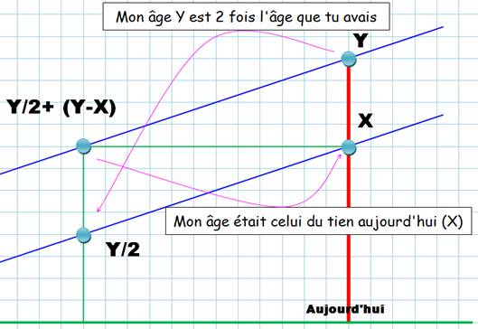 ce moment là, j'avais, compte tenu de la différence d'âge: Y/2 + (Y – X). Or,