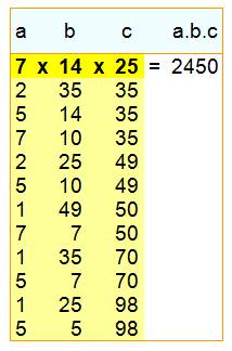 490, 1225, 2450. On note: a, b, et c l'âge de chaque
