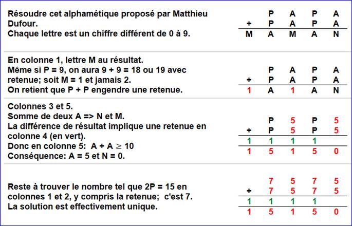 Anglais: Verbal arithmetic, alphametics, cryptarithmetic,