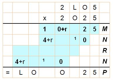 2, 5} sont déjà utilisés, que O est pair et que L > 4 |