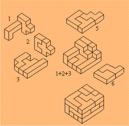 but est de réaliser un cube 3 x 3 x 3 avec 7 pièces: