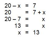 – 10 = 5 x = 10 + 5 x = 15 Je ne comprends pas