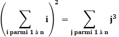 de la racine carrée conduit à l'égalité: carré de somme = somme des cubes. |
