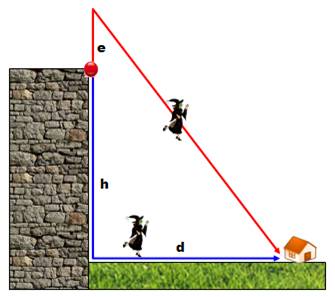 pose le problème suivant: Deux sorcières* en haut d'un mur décident de rejoindre le village.