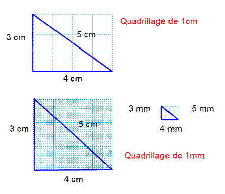 dessine un quadrillage plus petit; de plus en plus petit. Que se passe-t-il? Avec le même triangle dans un quadrillage plus