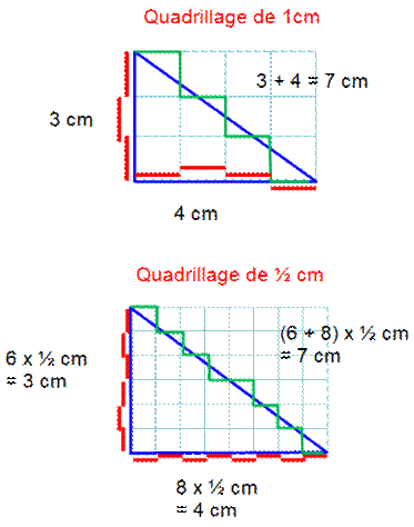 les cas, la longueur de l'escalier vert est égale à la longueur des segments