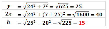 calcule la longueur de l'hypoténuse de chaque triangle (x et y) en appliquant