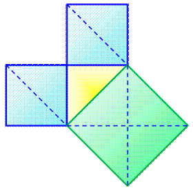 triangles déplacés en position bleue forment le grand carré oblique de côté